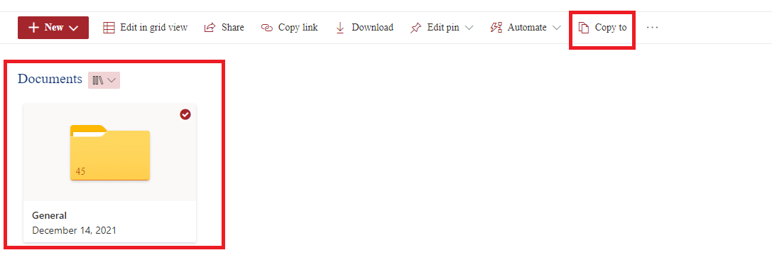 This user's OneDrive should now hold big data like corporate videos and other media that won't change often. It can also be used to back up Teams storage that it's not being used anymore in order to free Sharepoint Storage. To backup a Team site to the file storage user's OneDrive go to the Team Site library, select it and then click Copy to and choose My files on the left menu: